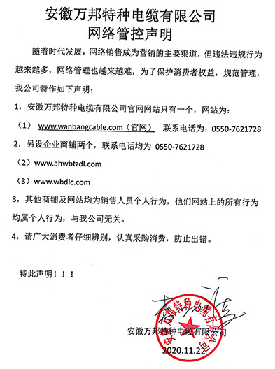 鄭重聲明:安徽萬邦特種電纜有限公司官方網站為:www_wanbangcable_com.leonore.cn,除此之外無任何子網站或合作網站,其余均為假冒偽劣。電話:0550-7621728 13485756353 地 址:安徽省天長市滁州高新技術產業開發區經四路29號